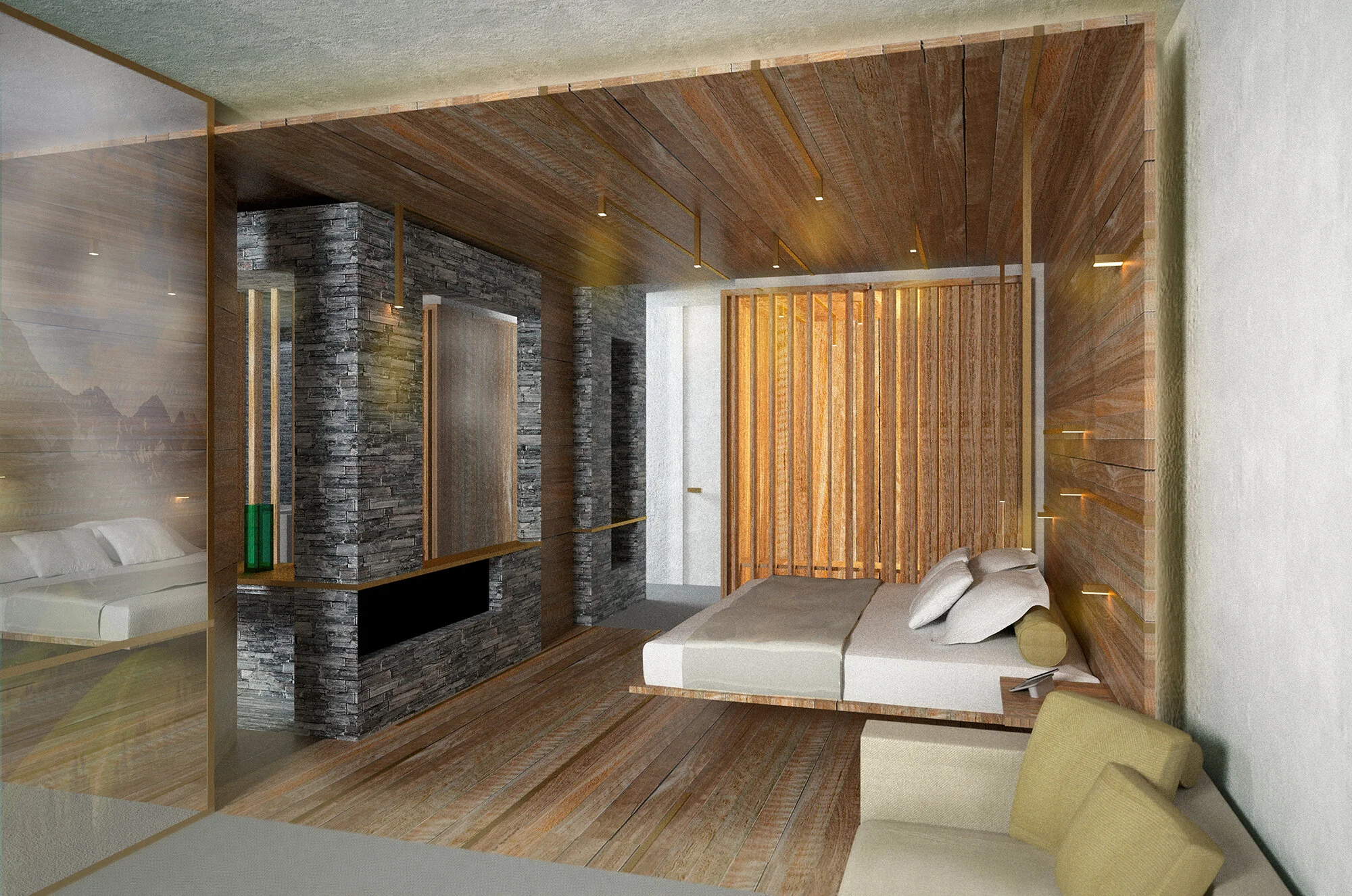 Redefining tradition and expectations drove our proposals for the upscale resort. Vernacular materials are reinterpreted to create a twist on traditional chalet design. Striking an elegant contrast between roughness of material and the crisp forms, the interiors were designed with a consideration for local craftsmanship. The various residential accommodation typologies are designed around a central element – the hearth – and fitted with contemporary furniture to provide a refreshing outlook on the local archetype.